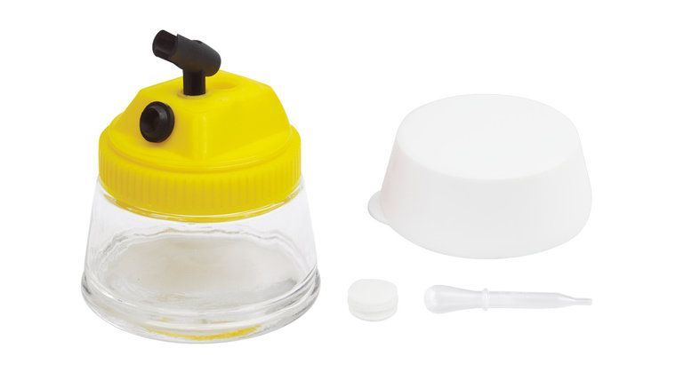 4.Spuit een paar maal de airbrush uit in de cleaningpot;