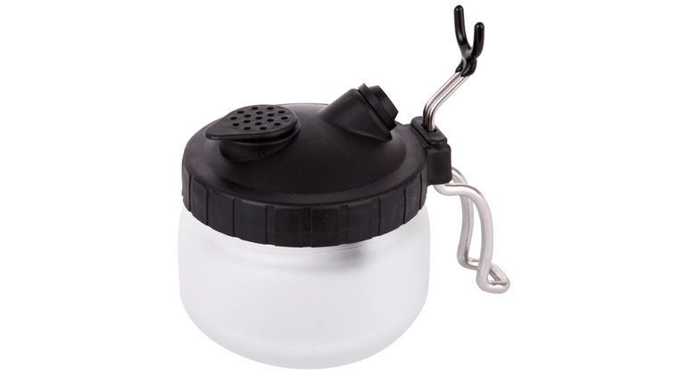 4.Spuit een paar maal de airbrush uit in de cleaningpot;