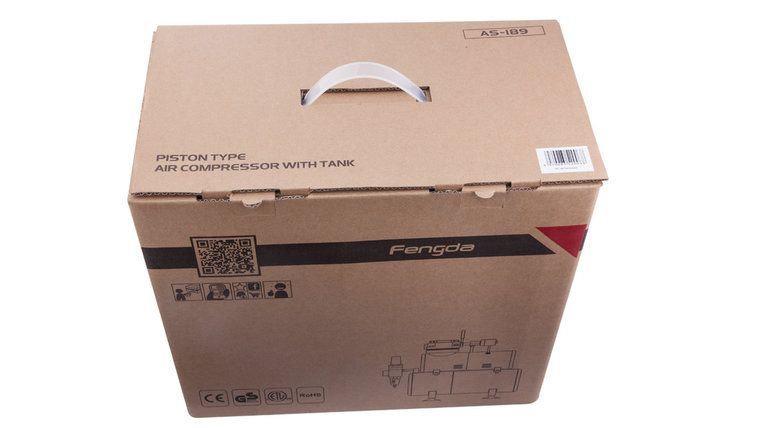 Olievrije mini compressor met luchtreservoir (drukvat). De drukregelaar is uitgerust met een filter en drukmeter (manometer).