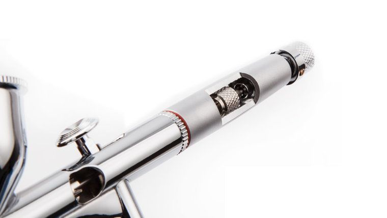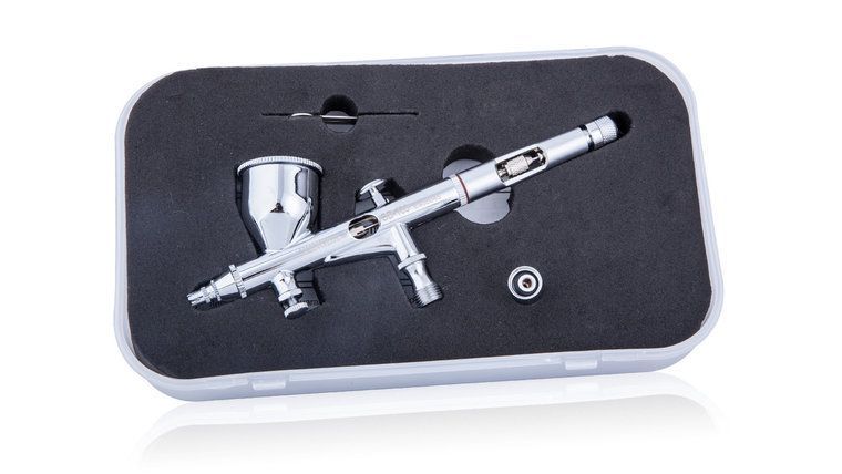 Fijne airbrush BD-180 double action, voorzien van regelbare luchtschroef,