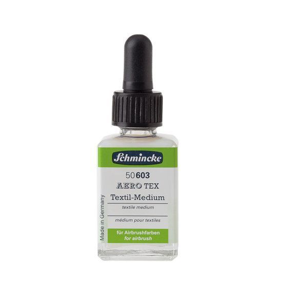 Maakt, gemengd met Schmincke Aero Color® Professional, de airbrushverf geschikt voor gebruik op textiel (mengverhouding 1:1). De stof eerst wassen, drogen en strijken. Het ontwerp aanbrengen en goed laten drogen. Strijk vervolgens de achterzijde van het materiaal (katoen ca. 2 min, zijde/wol ca. 4-6 min. synthetisch materiaal ca. 8 min).